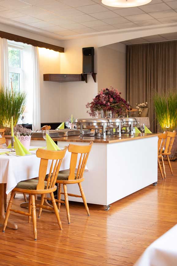 Schön, dass Sie uns besuchen und sich für unser Haus entschieden haben. Unseren Gästen gemütliche Stunden zu bereiten und die Sorgen des Alltags vergessen zu lassen, erfüllt uns mit Freude und Stolz. Um Sie immer mit leckeren Saisongerichten verwöhnen zu können, bieten wir Ihnen regelmäßige abwechselnde saisonale Gerichte. Jeden Sonntag verwöhnen wir Sie mit einem reichhaltigen Familienbuffet. Nachmittags gibt es hausgemachten Kuchen und westfälische Schnittchen. Selbstverständlich erfüllen wir Ihnen auch gerne Ihre Sonderwünsche, bitte sprechen Sie uns einfach an, wir beraten Sie gerne!